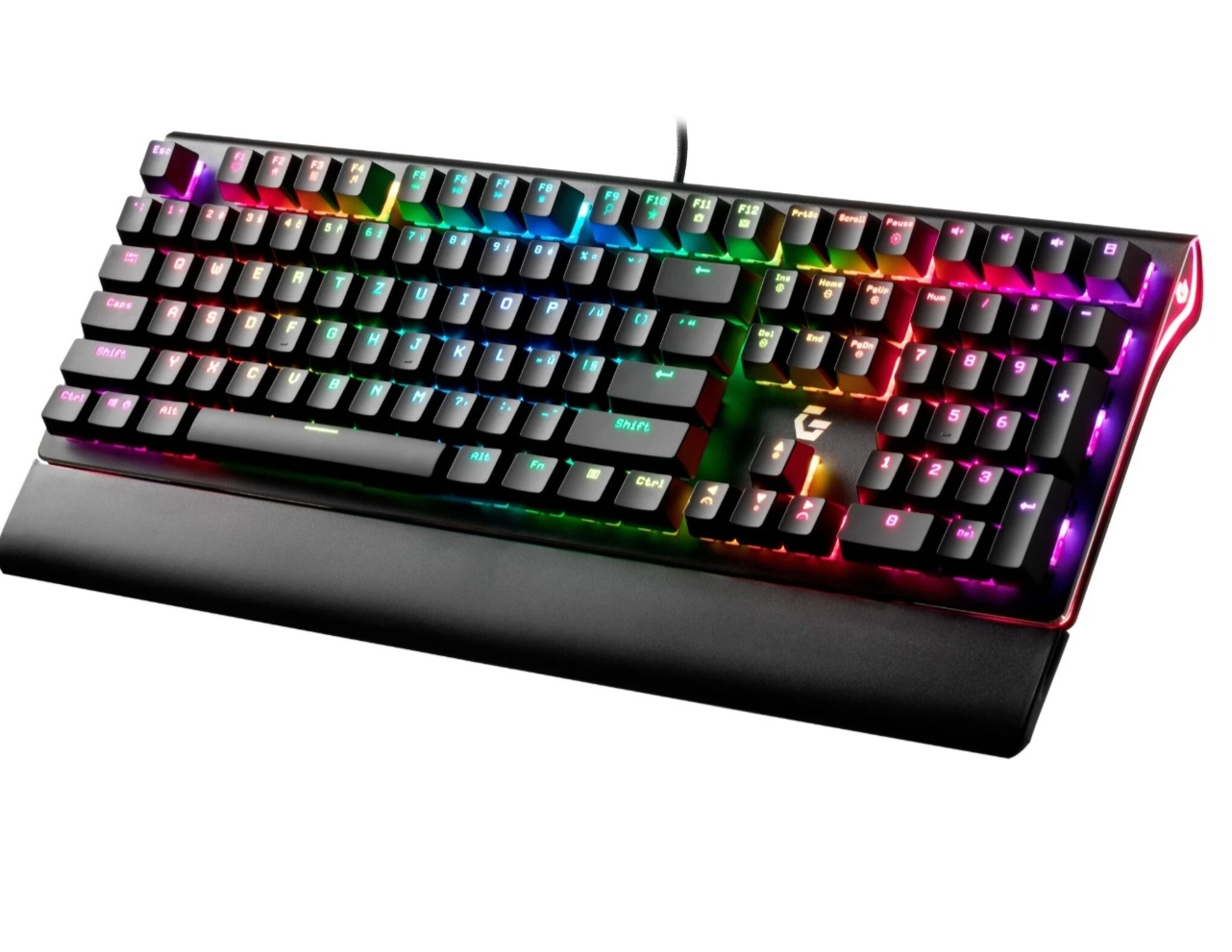 Výkonná herní klávesnice se spínači Outemu Red. CZ popisky kláves. Konfigurovatelné RGB podsvícení. 108 kláves spolu s multimediálními. Hliníkový kryt. Opěrka zápěstí. 1.8m dlouhý opletený kabel. Systém pro správu kabelu. Software v češtině. Rozměry 441 x 182 x 42 mm.