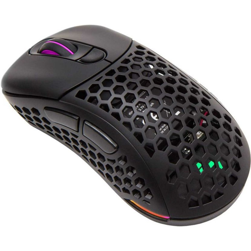 Herní myš s optickým senzorem PixArt PAW3335 s rozlišením až 16 000 DPI, mechanické spínače OMRON (až 20 mil. kliknutí), rychlost dotazování 1 000 Hz, konfigurovatelné RGB podsvícení, 6 programovatelných tlačítek. Myš je určena pro praváky. Podpora drátového i bezdrátového připojení. Baterie s kapacitou 300 mAh. Myš má vyměnitelný kryt (plný i odlehčený - děrovaný). 1.8 m dlouhý, odlehčený opletený kabel s USB-C rozhraním. Podporované OS Windows XP, 7, 8 a 10. Přizpůsobitelná hmotnost, v základu cca 72g. Rozměry 126 x 66 x 42 mm.